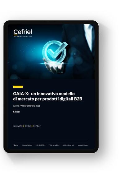 Gaia-X è una iniziativa, nata nel 2019, che intende creare un ecosistema digitale aperto, trasparente e sicuro all’interno del quale ciascun partecipante possa mettere a disposizione e utilizzare dati e servizi digitali di nuova generazione, secondo linee guida e regole condivise, all’interno dei diversi domini applicativi e di mercato quali, ad esempio, manifattura, trasporti e mobilità, agroalimentare e agritech, servizi avanzati e finanza, educazione e cultura.Molte aziende stanno osservando Gaia-X in ottica strategica e lungimirante come un modello applicabile in diversi mercati quali, ad esempio, aziendali, per la distribuzione di prodotti digitali B2B all’interno di una singola impresa o di un gruppo di imprese, interaziendali, per la distribuzione di prodotti digitali B2B all’interno di specifiche filiere di imprese (supply chain), oppure aperti, per la distribuzione di prodotti digitali B2B potenzialmente a tutti i soggetti economici interessati, anche non noti a priori.